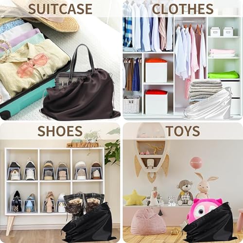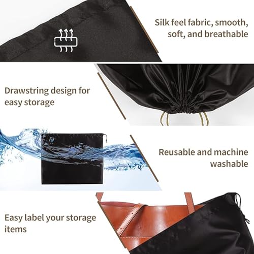 KUKUMAJI - اكياس غبار لحقائب اليد من كوكوماجي، شنطة تخزين للسفر من القماش الحريري مع شنطة برباط سحب لحقائب اليد والمحافظ والاحذية والاحذية الطويلة (اسود)