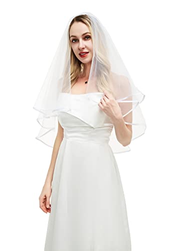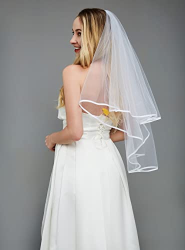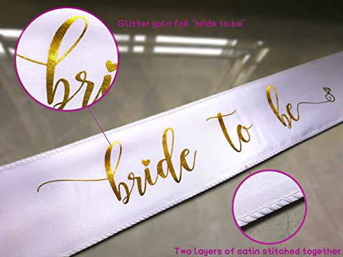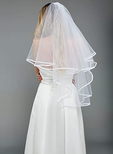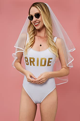 KUNG FU PARTY - Bachelorette White Double Ribbon Edge Center Cascade Bridal Wedding Veil with Comb and Bride to Be Satin Sash