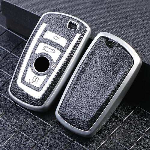 KUNIO - حافظة مفاتيح من كونيو مناسبة لسيارة بي ام دبليو 1 سيريس 2 سيريس 3 سيريس 4 سيريس 5 سيريس 6 سيريس F10 F12 F20 F25 F30 X3 X4 M3 M4 M5 3GT 5GT حافظة حماية بدون مفتاح من البولي يوريثين الحراري، فضي، D