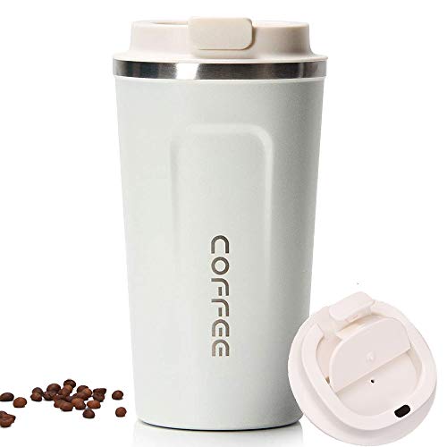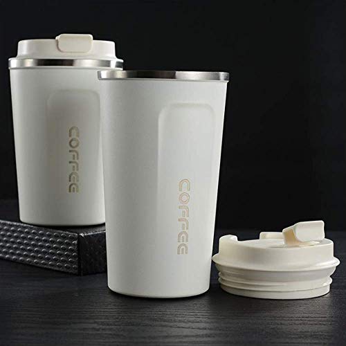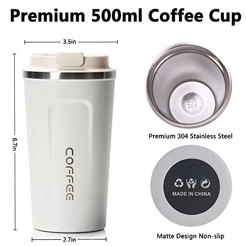 kunya - كوب حراري معزول بتفريغ الهواء من الستانلس ستيل بجدار مزدوج سعة 500 مل مع غطاء مانع للتسرب قابل لاعادة الاستخدام للقهوة والشاي والبيرة لون ابيض كونيا
