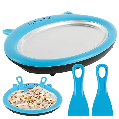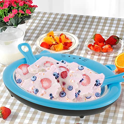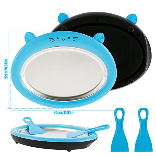 Kuphy - صانعة رول الآيس كريم والزبادي المقلي على شكل قطة لطيفة مع ملعقتين سباتولا من كوفي، صينية صنع الآيس كريم الفوري للأطفال، قالب ثلج صغيرة آمنة غذائيا للاطفال الأولاد والبنات (ازرق)