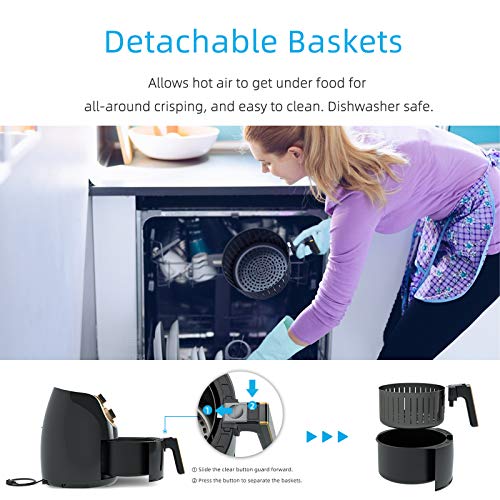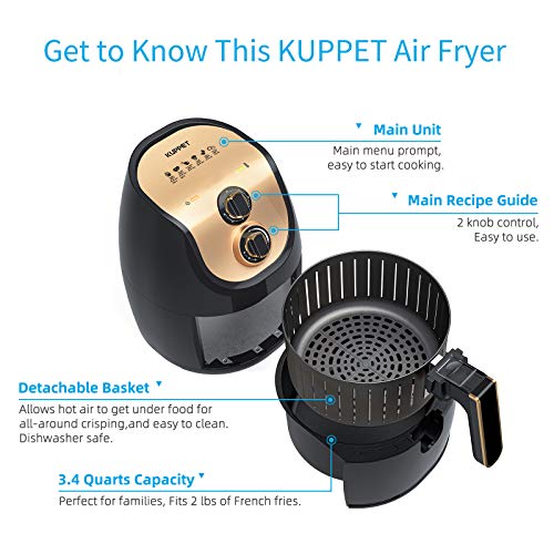 KUPPET - قلاية هوائية سعة 4 لتر من كوبيت، فرن كهربائي ساخن بدون زيت مع مقبض تحكم في درجة الحرارة، سلة قلي غير لاصقة بلمسة نهائية من الفولاذ المقاوم للصدأ، إيقاف تلقائي، 1500 وات، خالية من البيسفينول أ
