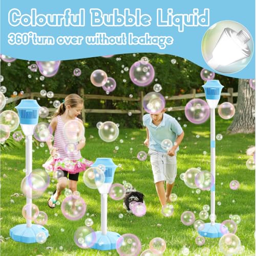 KUWUNG - الة صنع الفقاعات القائمة من كوونج مع اضواء وموسيقى للاستخدام الخارجي، 118 سم، صانعة فقاعات بتصميم ضوء الشارع قابلة لاعادة الشحن، ارتفاع تلقائي قابل للتعديل للحديقة واعياد الميلاد وحفلات الزفاف