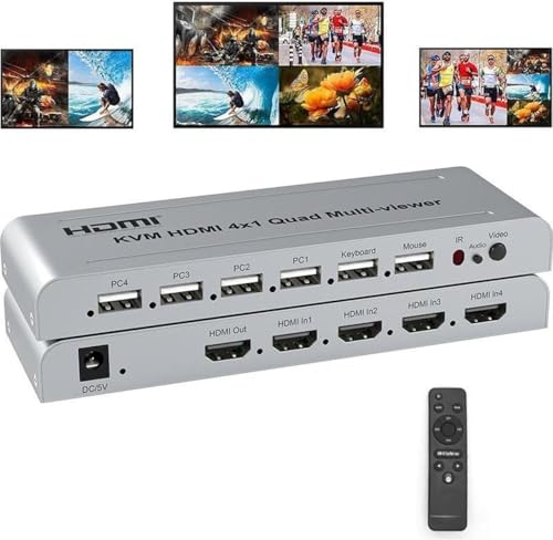 Generic - موزع KVM HDMI رباعي 4×1 بقوة 60 هرتز متعدد المقابس مع كابلات USB سلسة 4 في 1 HDMI متعدد للكيبورد والماوس والكمبيوتر 4K بقوة 60 هرتز
