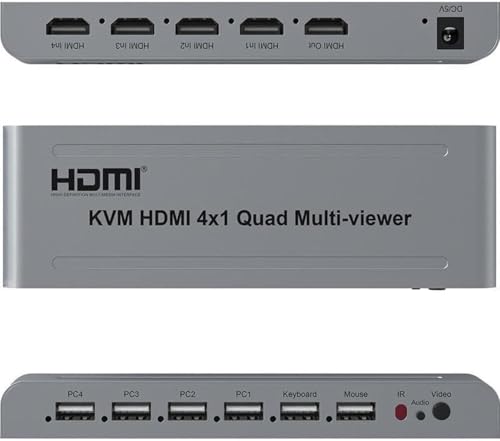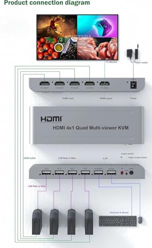 - 1: موزع KVM HDMI رباعي 4×1: يشترك أربعة مضيفين في شاشة واحدة، ومجموعة واحدة من الماوس ولوحة المفاتيح للتحكم في أربعة أجهزة كمبيوتر أو أجهزة مضيفة.