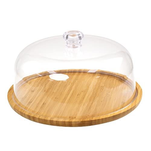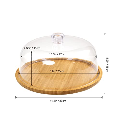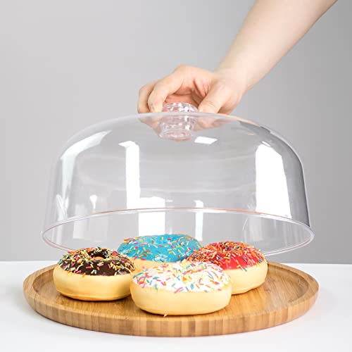 KVMORZE - صينية حلوى اكريليك مع قاعدة من KVMORZE، صينية كيك من الخيزران بغطاء قبة اكريليك شفاف، صينية تقديم الكيك والفواكه للمطبخ وأعياد الميلاد والزفاف والمقبلات والحلوى والجبن، حجم 30 سم