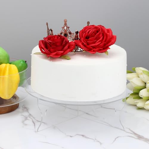 KVMORZE - حامل كيك دائري أكريليك مع قاعدة، حامل كب كيك شفاف من طبقة واحدة، طبق تقديم لحفلات الشاي وحفلات أعياد الميلاد والزفاف وحفلات استقبال المولود وديكور المنزل من كيه في ام او ار زد اي، 30 سم، لون شفاف