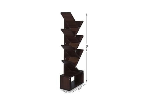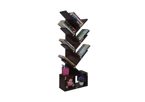 KVS Furniture - رف كتب خشبي هندسي مع رف عرض للتخزين، طاولة عرض مزدوجة (اكاسيا بني) يمكنك تركيبها بنفسك (افعلها بنفسك) من كيه في اس فيرنتشر