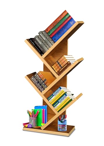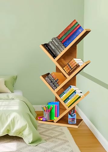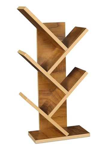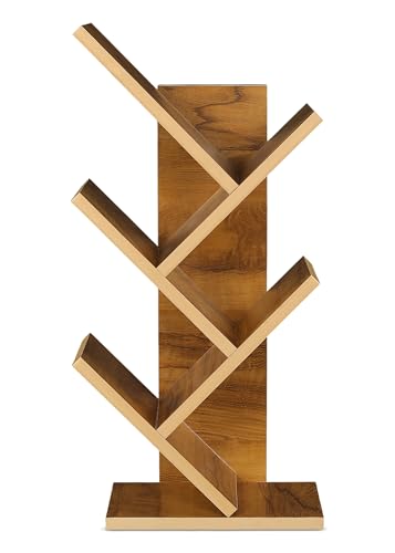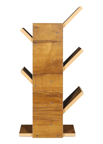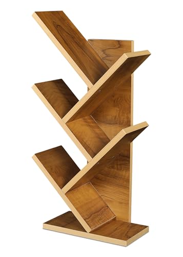 KVS Furniture - رف كتب بتصميم هندسي من الخشب للمنزل وغرفة المعيشة والمكتب، منظم قائم بذاته بلمسة نهائية لامعة، دولاب كتب عصري بشكل شجرة مكونة من 5 طبقات من كيه في اس فيرنتشر، بني (أصفر بلوط) (تركيب ذاتي)