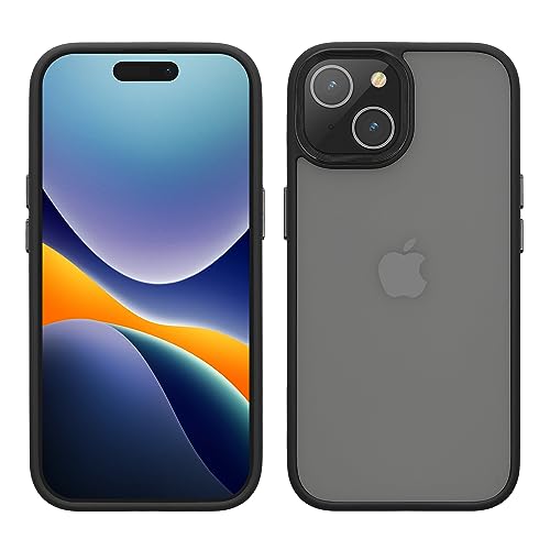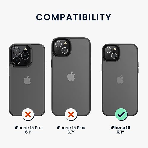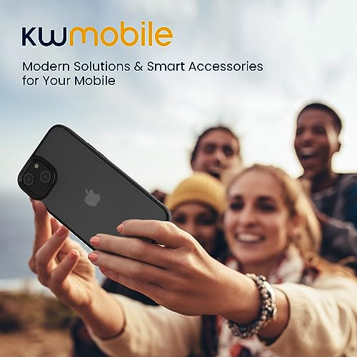 kwmobile - جراب حماية متوافق مع آيفون 15 من كيه دبليو موبايل - حافظات صلبة شفافة مع واقي شاشة - غطاء موبايل مضاد للصدمات مع ممتص للصدمات من السيليكون والبولي يوريثين المقاوم للحرارة الناعم - أسود/شفاف غير لامع