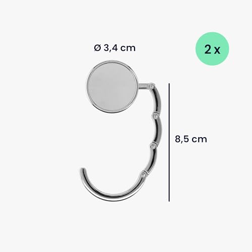 kwmobile - خطافات شنط اليد للطاولات من كيه دبليو موبايل - مجموعة من 2 شماعات قابلة للطي - حوامل شنط محمولة لطاولة المطعم والبار والمكتب - اسود وفضي