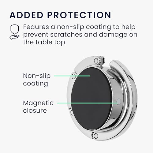 - مقبض مقاوم للانزلاق: سيحافظ السطح السفلي غير القابل للانزلاق لشماعة الشنطة على شنطتك معلّقة بإحكام دون ترك علامات أو إتلاف المكتب أو الطاولة.