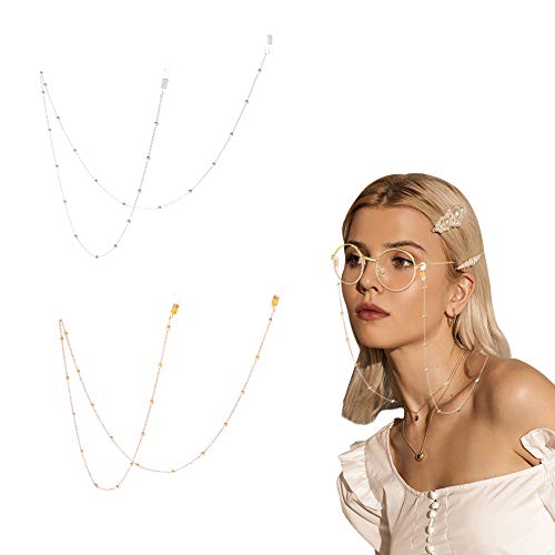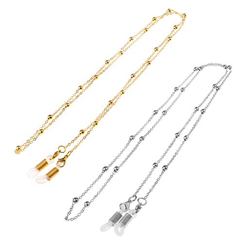 KWO - سوار خرز بسلسلة حامل النظارة من جريسلايف، 2 قطعة في العبوة، لون ذهبي وردي وفضي, كما هو موضح في الصورة