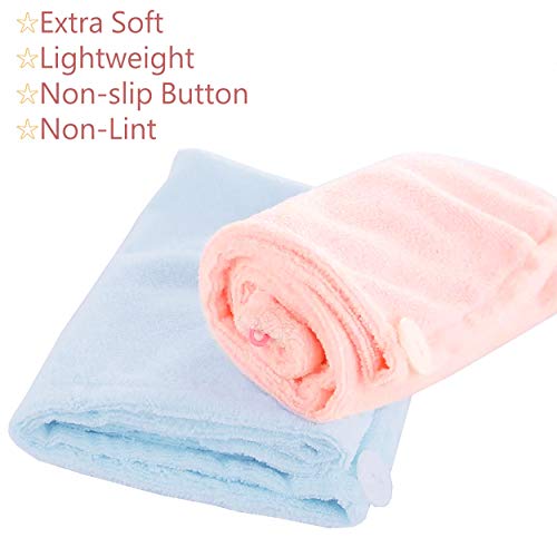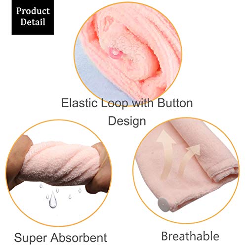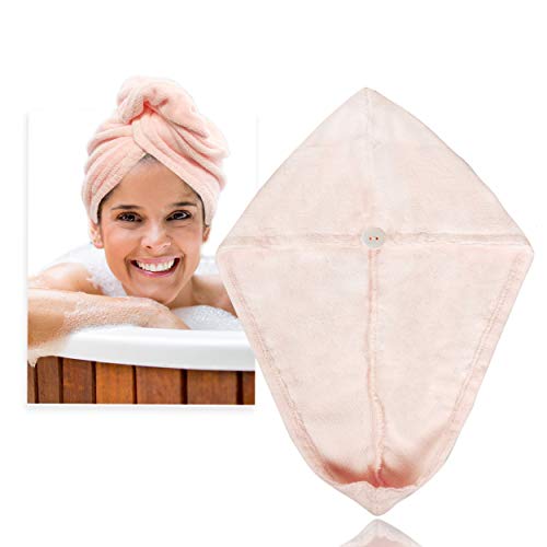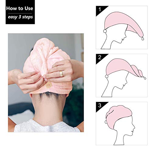 KWONG - فوطة لتجفيف الشعر من المايكروفايبر عالية الامتصاص وسريعة الجفاف دوفاش غطاء رأس بنمط العمامة مضاد للتشعث مزود بزر للف الطويل للنساء والبنات قطعة واحدة بينك فاتح زهري كوانج مقاس واحد