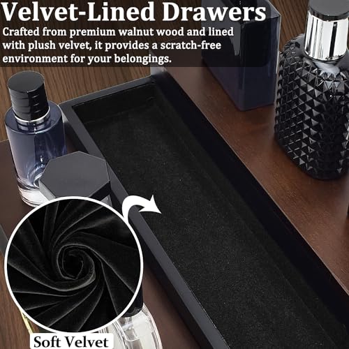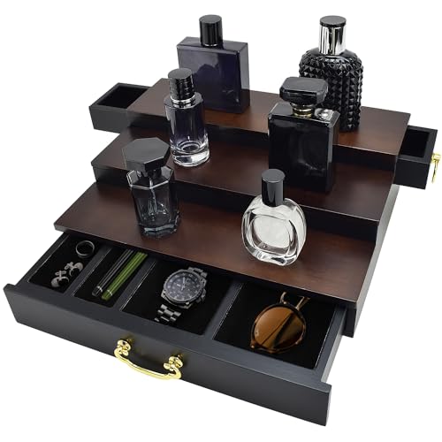 KWYADLUO - منظم كولونيا خشبي أنيق مع عدة أدراج مبطنة بالقطيفة للرجال، منظم عطور للرجال لديكور غرفة النوم من كويادلو (بني جوزي، 3 طبقات)
