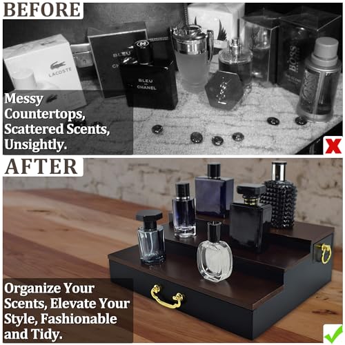 - 【عرض متطور للعطور】منظم الكولونيا الخشبي للرجال من كويادلو مكون من 3 طبقات، كل طبقة مصنوعة بدقة من خشب الجوز الفاخر. يستوعب كل مستوى زجاجات متعددة الأحجام، مما يسمح لك بعرض عطورك الفريدة بسهولة. سواء كنت خبيرًا في العطور الفاخرة أو ببساطة تقدر فن التزيين، فإن منظم العطور الخاص بنا يسمح لك بعرض عطورك المميزة بكل فخر.