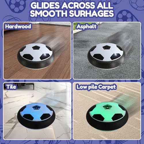 KXIPB - كرة قدم هوفر من كيه اكس اي بي بي - لعبة كرة قدم عائمة بالهواء مع إضاءة ليد وممتص للصدمات إسفنجي للألعاب الداخلية للأولاد والبنات، 3-12 سنة