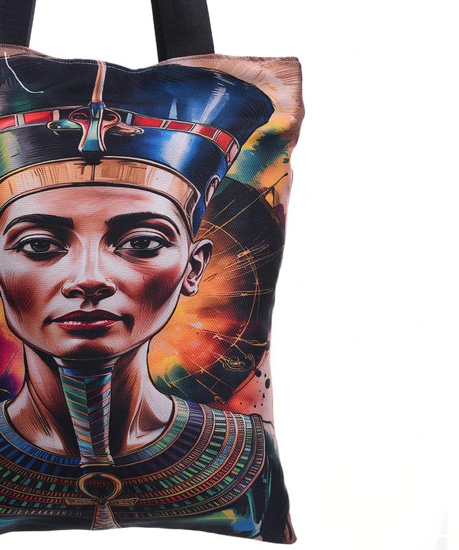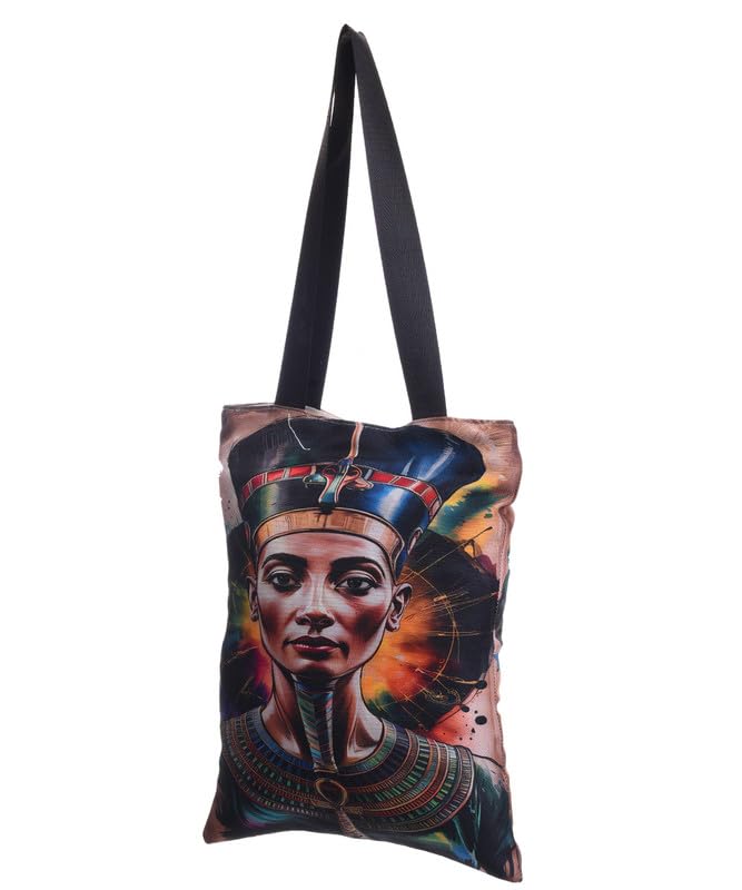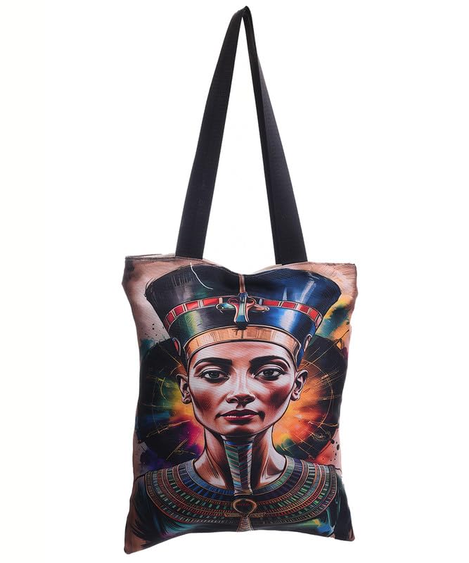 KYAN - شنطة يد كبيرة توت من الكتان بتصميم مطبوع على وجهين مع سحاب للنساء من كيان