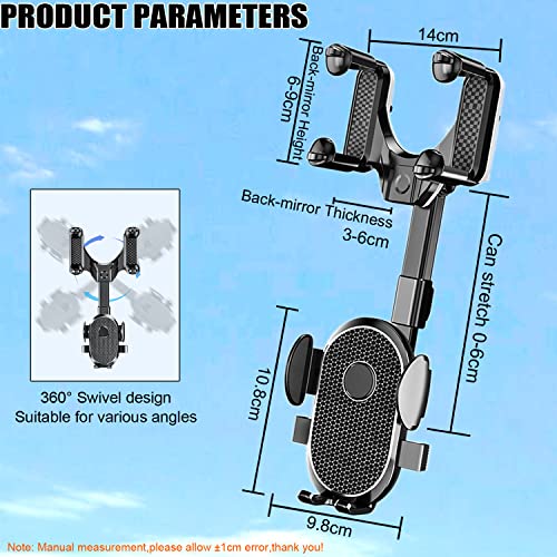Kyduu - حامل موبايل للسيارة من كيدو، حامل موبايل شامل للسيارة يدور 360 درجة، حامل موبايل شامل متعدد الوظائف لمرآة الرؤية الخلفية، قابل للدوران 360 درجة