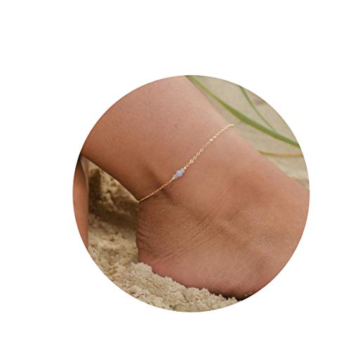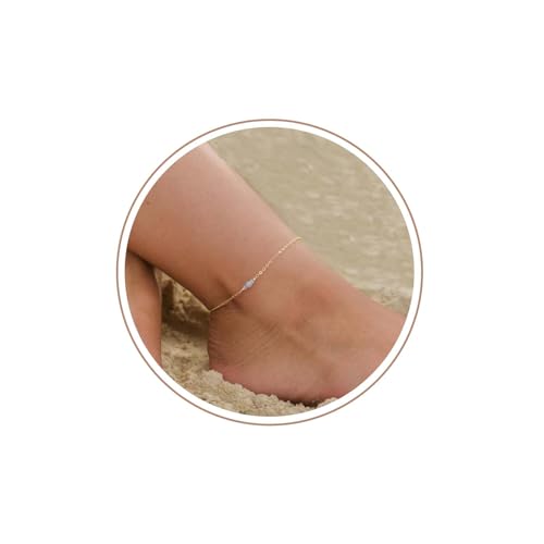 Kyerlyn - Kyerlyn Dainty Simple Chain Anklet for Women 18k Gold/Silver Plated Summer Beach Beaded Evil Eye Moon Figaro Butterfly Satellite Cuban Pearl Flat Marina Anklet Gift