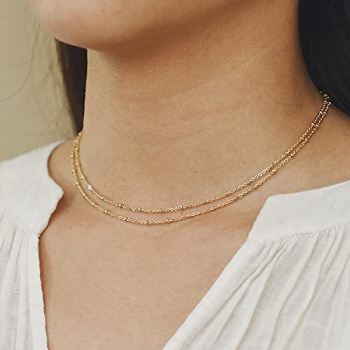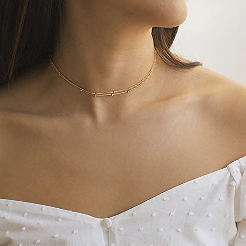 Kyerlyn - كايرلاين قلادة شوكر متعددة الطبقات من دانيتي، مطلية بالذهب عيار 18 قيراط قابلة للتعديل، سلسلة ستالايت صغيرة مصنوعة يدويا، هدايا مجوهرات للنساء
