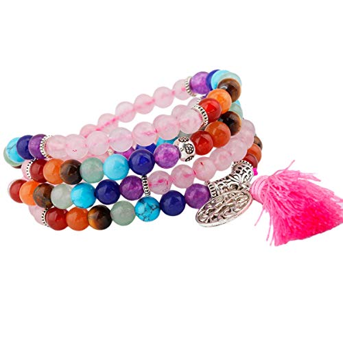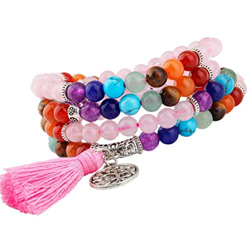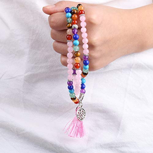 KYEYGWO - سبحة صلاة وسوار من خرز مالا للرجال والنساء كيجوو 108 خرزة 6 ملم الخرزات التبتية الاستشفائية للجنسين حجر روز كوارتز