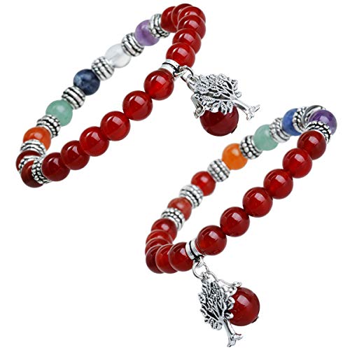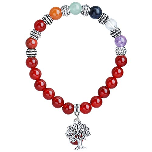 KYEYGWO - سوار شاكرا 8 ملم بتصميم شجرة الحياة خرز قابل للتمدد من حجر ريكي العلاجي والتوازن للجنسين 7 انش العقيق الاحمر و7 احجار 13-كارنيليان -7