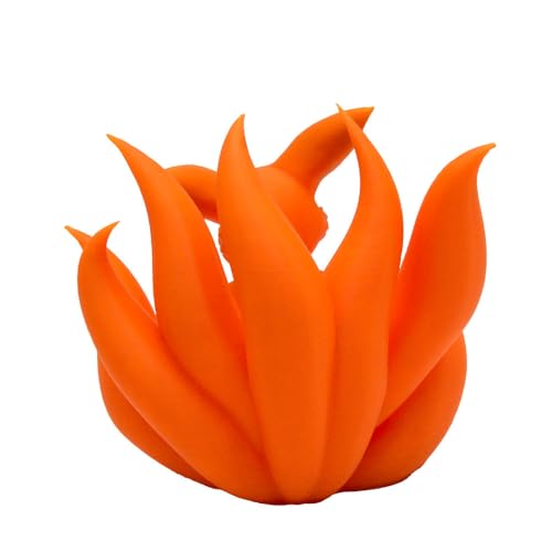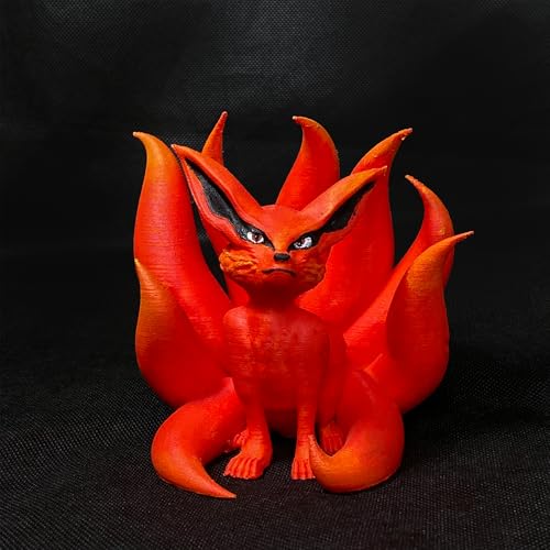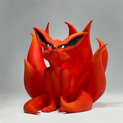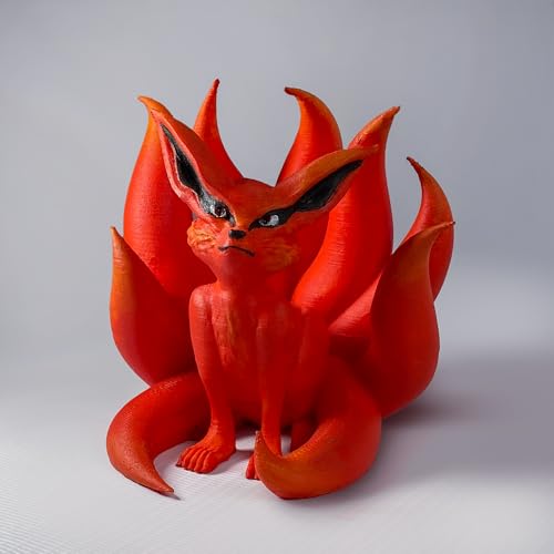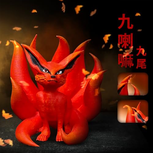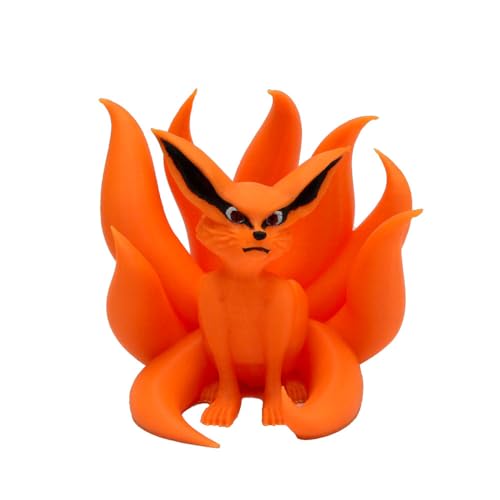 - التصميم الفريد: تمثال كيوبي برتقالي اللون بتصميم مميز يشبه الثعلب مع تسع ذيول متموجة