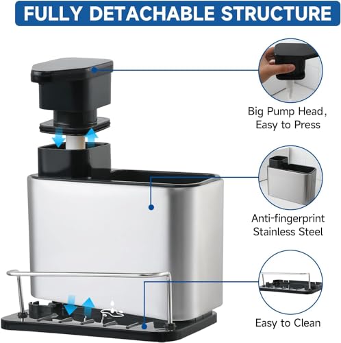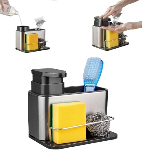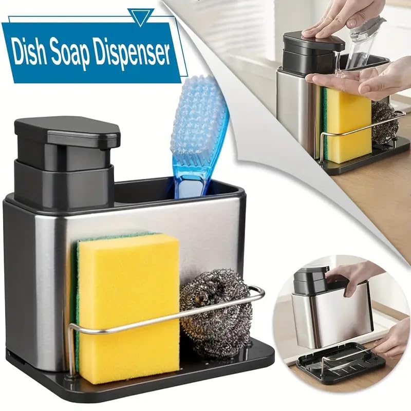 KYTRONIC - صينية تنظيم حوض المطبخ 3 في 1 من الستانلس ستيل للاسفنج وموزع الصابون واكسسوارات غسل الصحون الاخرى رف تخزين لحوض متعدد الوظائف اكسسوارات الحمام الألوان