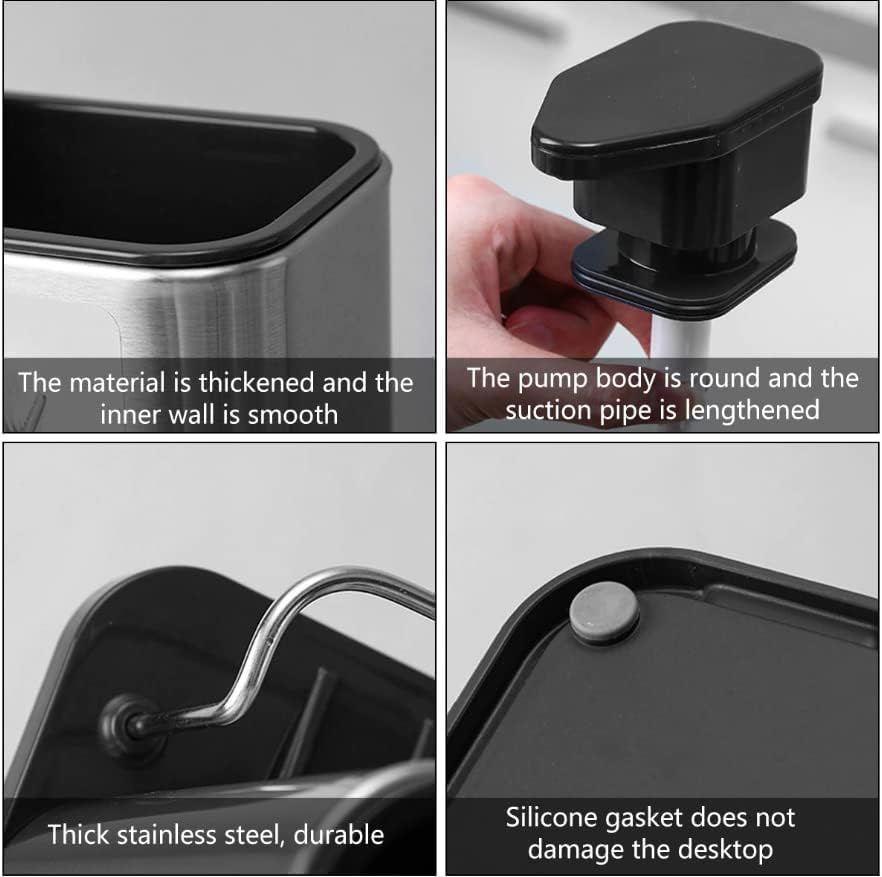 - 【ستانلس ستيل مضاد لبصمات الأصابع】يتميز بلمسة نهائية معدنية مصقولة راقية تقاوم بصمات الأصابع والبقع للحفاظ على الأناقة. ما عليك سوى تنظيفها بمنشفة ورقية مبللة، لأن التصميم المضاد لبصمات الأصابع يمكن أن يحافظ على السطح نظيفًا ولامعًا. حامل فرشاة موزع صابون الأطباق المقاوم للصدأ هذا هو مساعد جيد لسطح الطاولة.