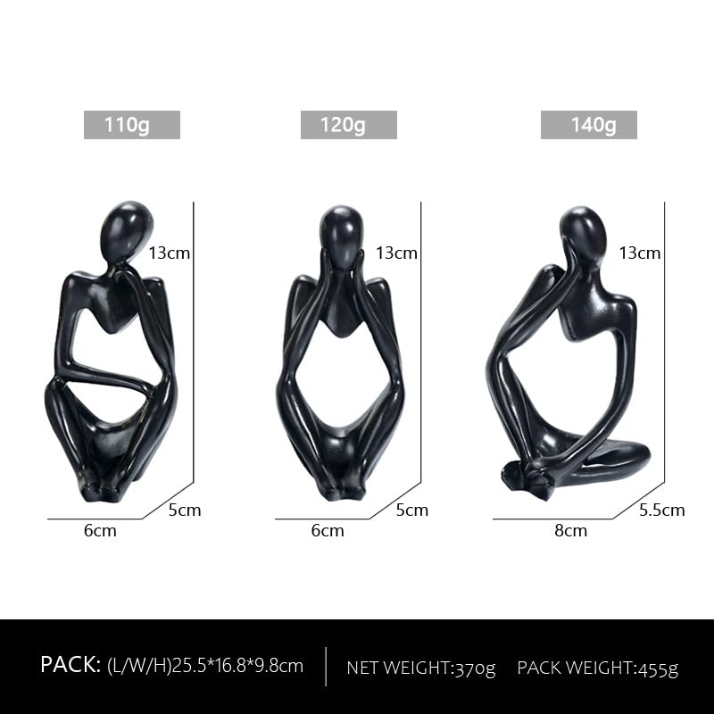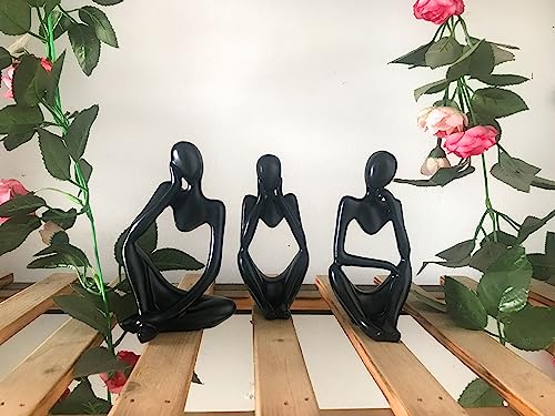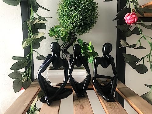 KZDZTYF - تمثال مفكر للديكور باللون الاسود من كيه زد دي زد تي واي اف، 3 قطع، تمثال فني تجريدي. تماثيل مزخرفة للمكتب وغرفة المعيشة ورف الكتب وديكور المنزل