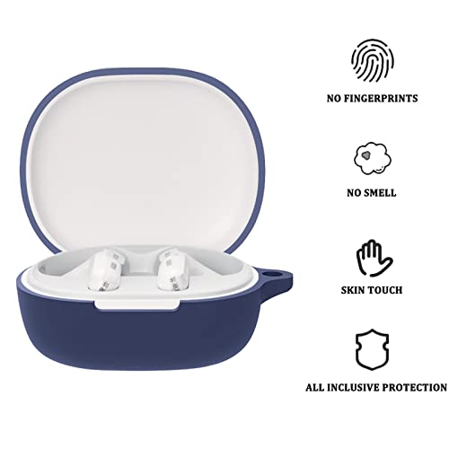 KZIOACSH - حافظة حماية من البولي يوريثين المقاوم للحرارة متوافقة مع سماعة شاومي ريدمي بودز 4 لايت ومزودة بخطاف سلسلة مفاتيح السيليكون الناعم للخدش أسود + أزرق داكن عبوة قطعتين سيليكون