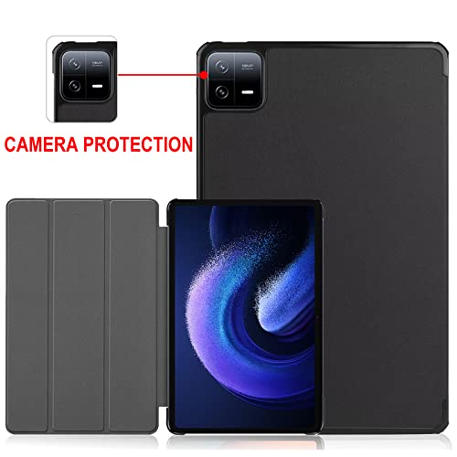 KZIOACSH - جراب حماية لجهاز شاومي باد 6/شاومي 6 برو 2023 من كيه زد اي او ايه سي اس اتش حافظة رفيعة للغاية جلد البولي يوريثين خفيفة الوزن مضادة للصدمات مع مغناطيس للنوم والاستيقاظ التلقائي أسود 28 سم