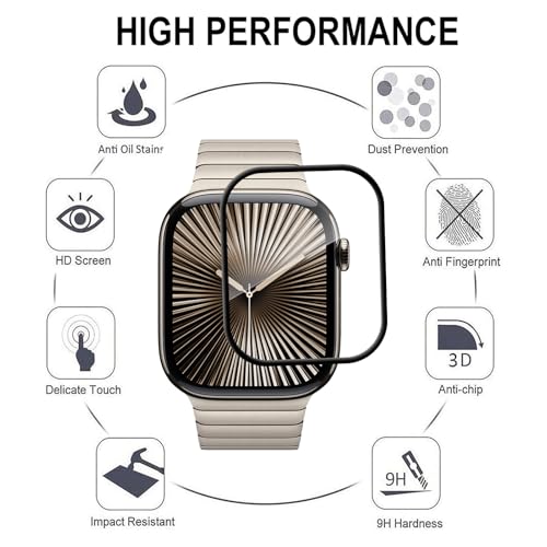 - التوافق: شاشة حماية متوافقة بقص دقيق يوفر تغطية ممتازة للزوايا والحواف الكاملة لساعة آبل سيريز 10 42 ملم. تحافظ على دقة وظيفة اللمس والانزلاق لاستخدام ساعتك بفعالية.