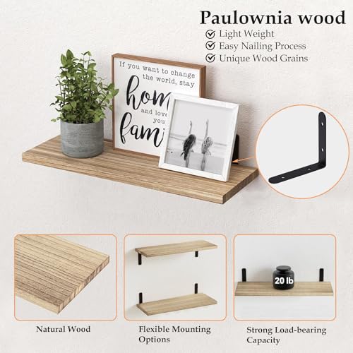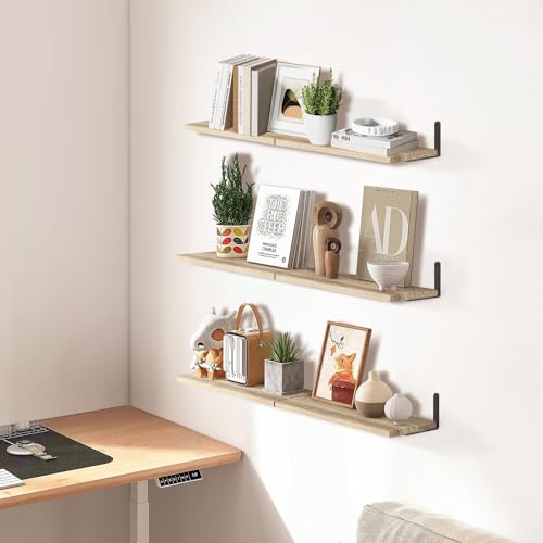 KZOBYD - رف عائم 40 سم من كيزوبيد مجموعة رفوف بلمسة نهائية خشبية لديكور الحائط عرض يثبت على للكتب والصور مع دعامة معدنية ناعم بني