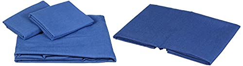 L'Antique - طقم ملاية سرير من لونتيك، 4 قطع - 240×260 سم - ازرق داكن، نسيج قطن، سادة، مزدوج/كامل