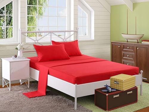 L'Antique - طقم ملاية سرير بأستك من لونتيك 4 قطع 240×260 سم احمر نسيج قطن سادة سوبر كينغ