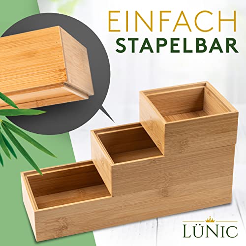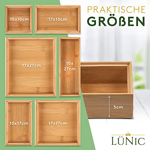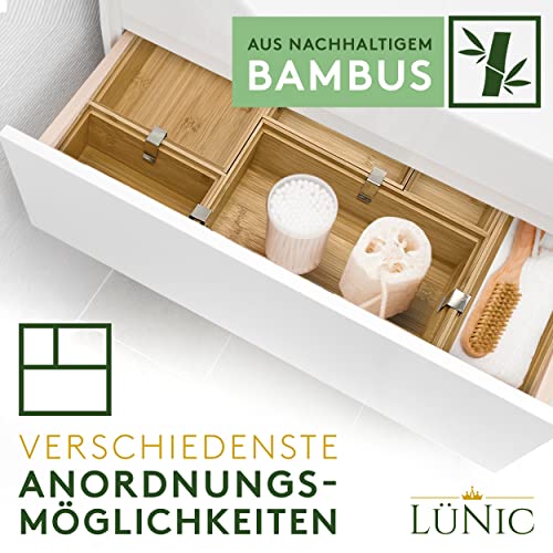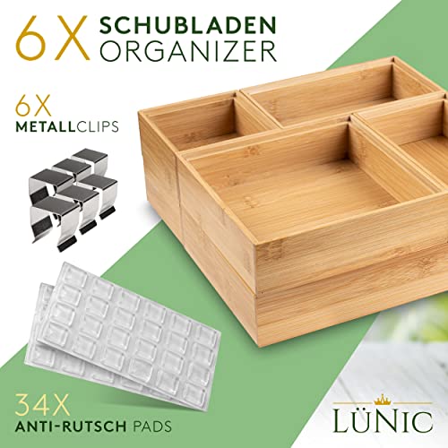 LÜNIC - صندوق أدراج من خشب البامبو للفرز ومنظم للمكتب والحمام والمطبخ يتضمن 36 وسادة مانعة للانزلاق و6 مشابك معدنية لونيك 6 قطع