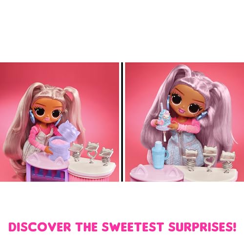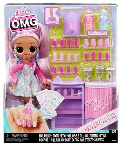 L.O.L. Surprise! - ال.او.ال. سربرايز! مجموعة اوه ام جي سويت نيلز لتخزين وعرض الأظافر الصناعية على شكل كافيه مرفقة مع العروسة كيتي كيه، 503859-EUC