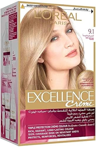 L'Oreal Paris - صبغة شعر كريم دائمة اكسيلانس من لوريال باريس - 9.1، اشقر رمادي فاتح جدا