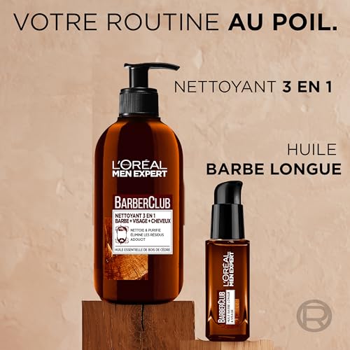 L’Oréal Paris men expert - غسول لشعر الوجه 3 في 1 مستوحى من مهارات الحلاقين للرجال للاستخدام اليومي غني بزيت خشب الأرز العطري، مناسب جميع أنواع البشرة من لوريال - 200 مل