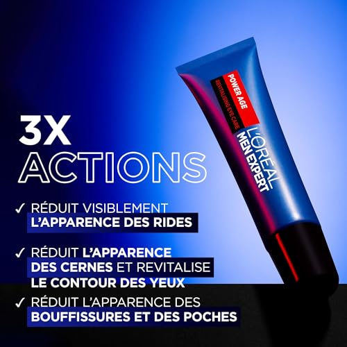 L’Oréal Paris men expert - مستحضر العناية بالعين اكسبيرت باور ايج من لوريال باريس، مع حمض الهيالورونيك، يقلل من مظهر التجاعيد والهالات السوداء وأكياس العين، 15 مل
