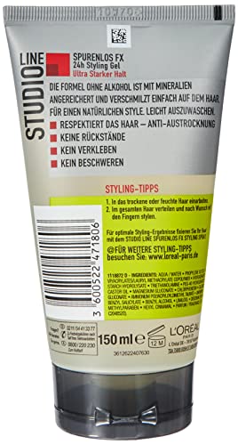 L'Oreal Paris - جل تصفيف الشعر ستوديو لاين، ثبات فائق القوة 24 ساعة، لا يلتصق ولا يترك بقايا، جل تصفيف اف اكس بدون اثر من لوريال باريس، 1 × 150 مل