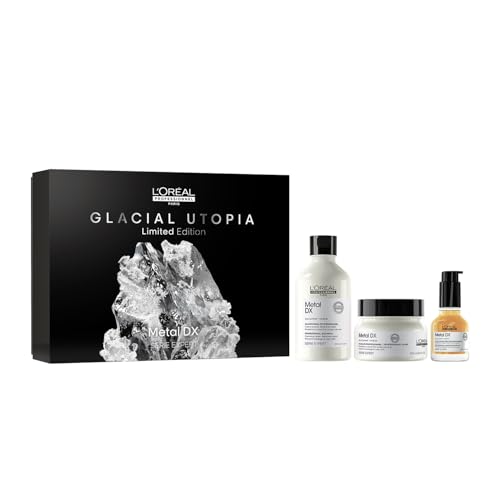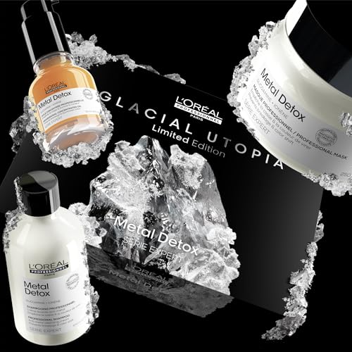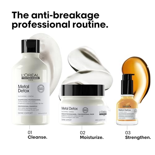 L'Oréal Professionnel Paris - لوريال بروفيشنال, مجموعة هدايا ميتال ديتوكس، روتين مضاد للمعادن للشعر التالف والهش، شامبو ثلاثي + قناع + زيت، اصدار محدود من سلسلة الخبراء