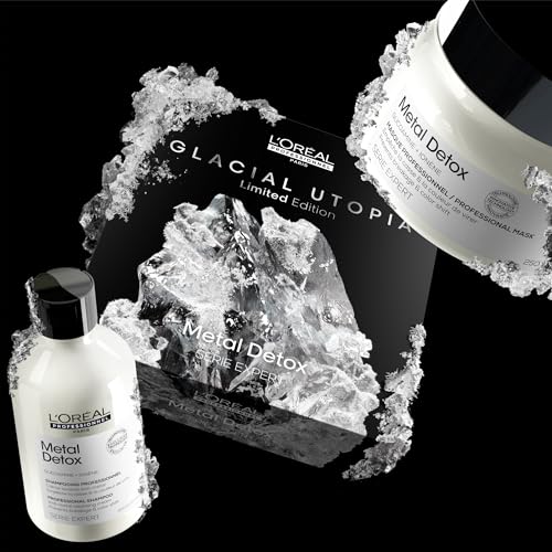 L'Oréal Professionnel Paris - المجموعة الثنائية جلاسيال يوتوبيا للتخلص من السموم والمعادن، مجموعة العناية بالشعر سيري اكسبرت، شامبو 300 مل وقناع 250 مل، حماية اللون وحماية من الأشعة فوق البنفسجية، مجموعة منتجات الشعر من لوريال