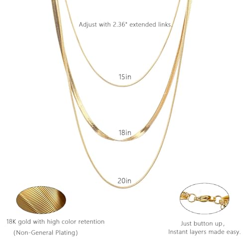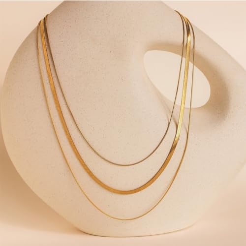 Léwind - عقد بطبقات ذهبي/فضي للنساء من ليويند، عقد أنيق مطلي بالذهب عيار 18 قيراط للنساء، تصميم عصري بطبقات متعرجة، سلسلة مشبك ورق، مجموعة مجوهرات عصرية هدايا للنساء والبنات