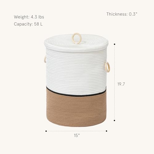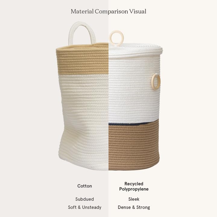 - سعة واسعة - مع مساحة داخلية واسعة 58 لتر، تناسب هذه السلة جميع ملابسك المتسخة. يبلغ قطرها العلوي 38.1 سم وارتفاعها 50 سم، مما يوفر مساحة واسعة للملابس الأسبوعية أو المنسوجات المنزلية الإضافية أو ألعاب الأطفال. مصنوعة من حبال البولي بروبلين المعاد تدويرها بسمك 0.7 سم، تتحمل متطلبات الاستخدام اليومي مع ضمان سهولة استيعاب العناصر المختلفة.