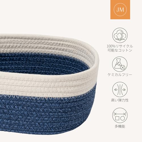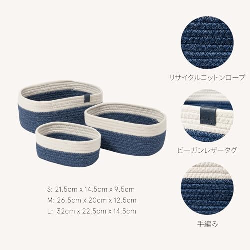 LA JOLIE MUSE - سلة تخزين من الحبال القطنية من لا جولي ميوز، سلة تخزين منسوجة يدويًا للحمام، مجموعة صغيرة الحجم مكونة من 3 قطع، لون أزرق وأبيض