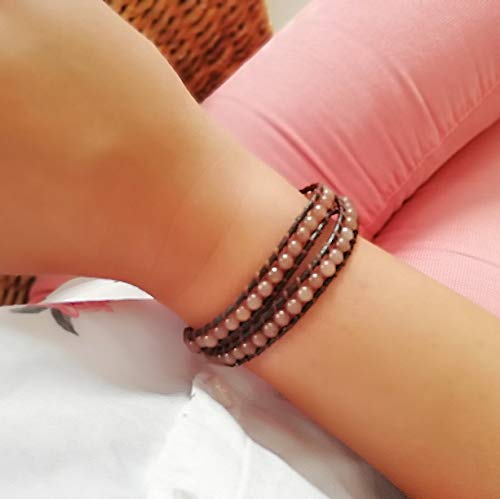 La Loria - سوار مزين باللؤلؤ لا بيرليريا مصنوع من الاحجار الكريمة وسوار طاقة وشاكرا الحجر الطبيعي لوريا Schmal جلد جايد نساء فتيات للأطفال الجنسين النساء للبالغين البنات.