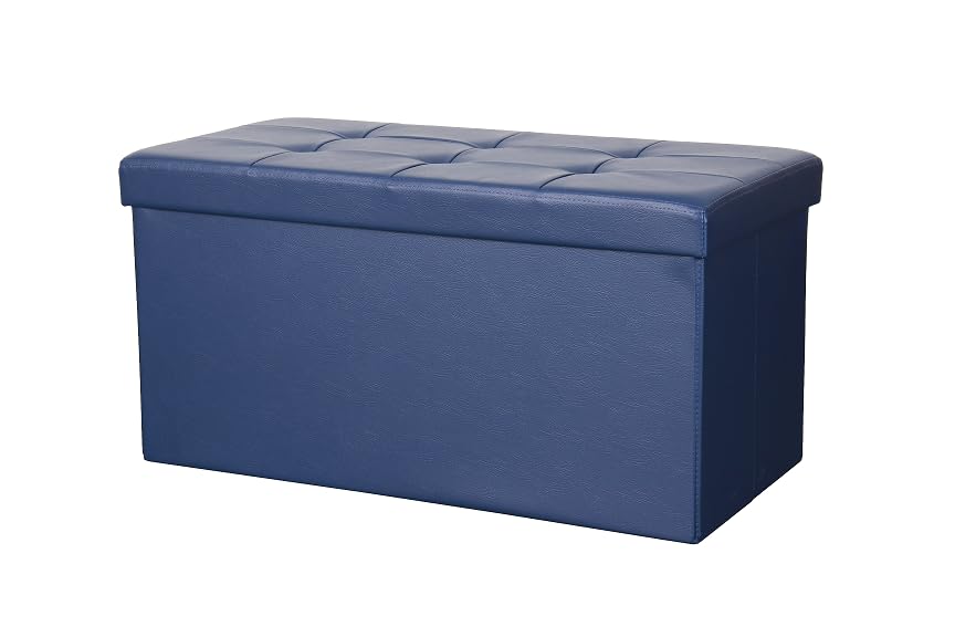 La Maison - لا ميزون صندوق تخزين كبير بتصميم عثماني قابل للطي من الجلد الصناعي، صندوق بطانية عملي (كحلي، 76 سم × 38 سم)